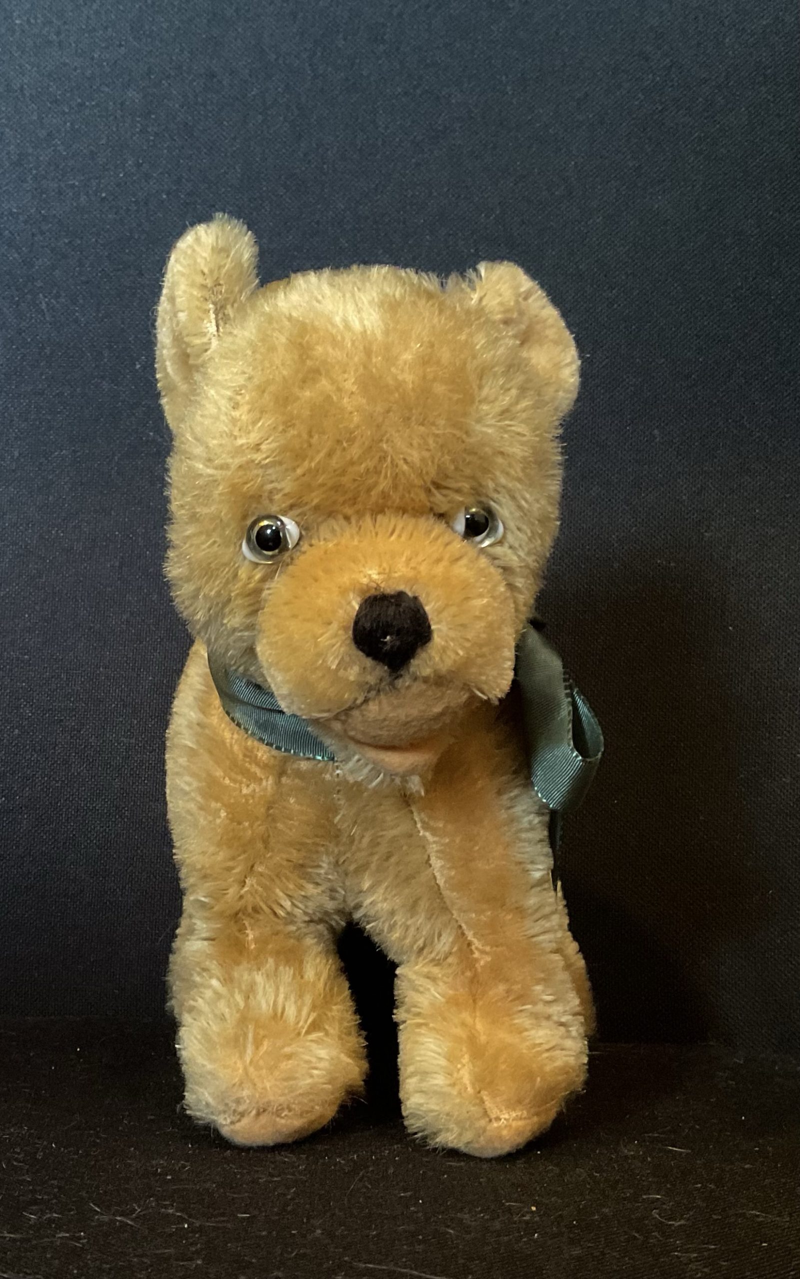 Little Bo Vintage mohair wire legged bear cub on all fours. Glass eyes. Some mohair balding to his bum, see pic. Stands at approximately 15cm/6in