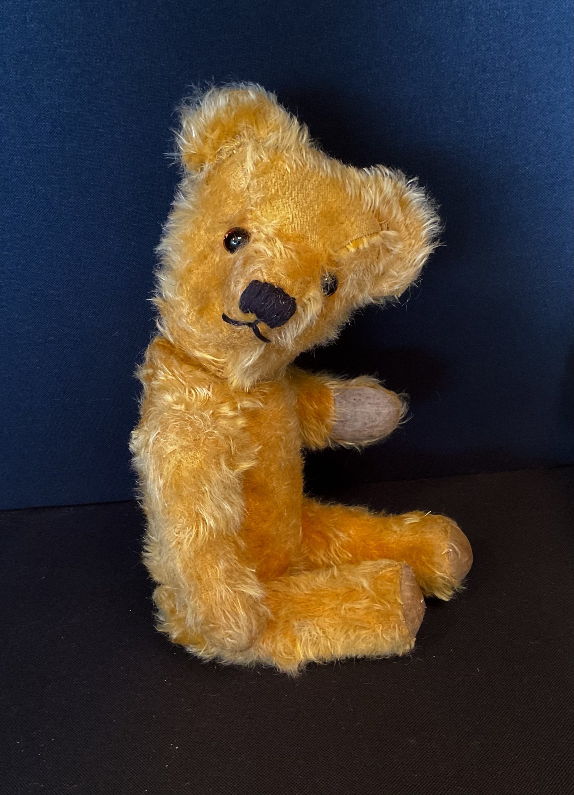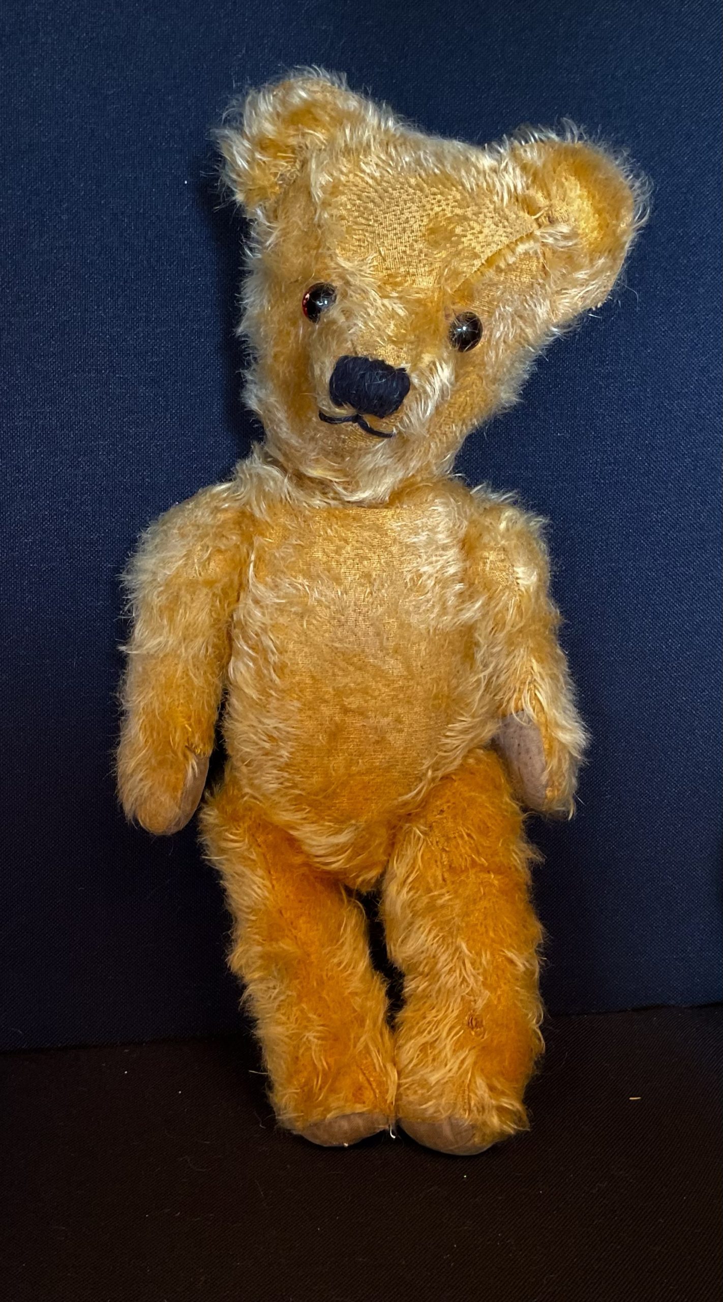 Judy Sweet Judy is an English mohair bear from the 1940/50s. She has had a new nosy growler fitted as hers was broken. Fully jointed with glass eyes and her original cotton pads. Stands at aprox 38cm/15in
