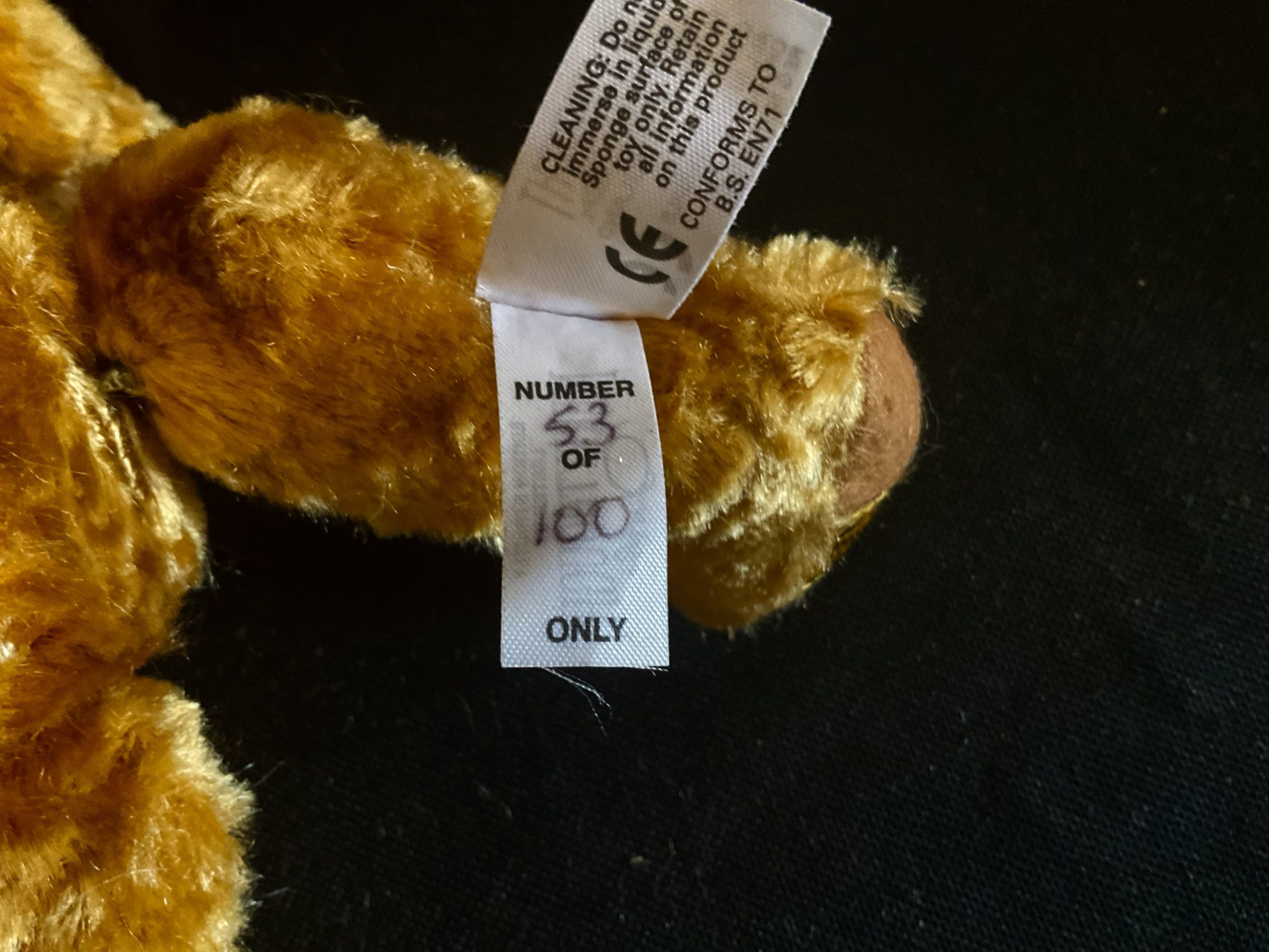 Anniversary Merrythought Cheeky Replica of original 1957 one in cotton plush soft velvet type material. Limited to 100 of these made in 2007. Loose wobble joints. Beautiful condition, with his bells in ears still working. Label on foot and on his bum. Length aprox 11in