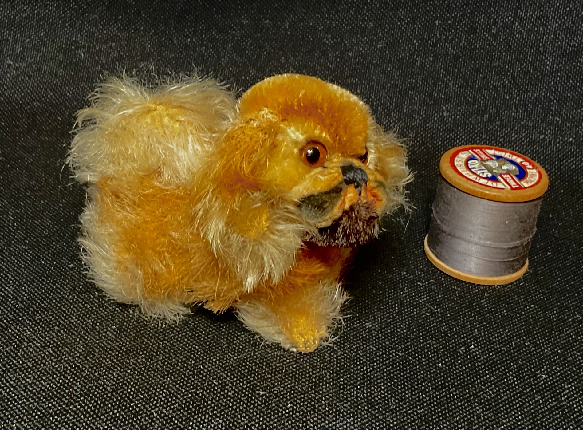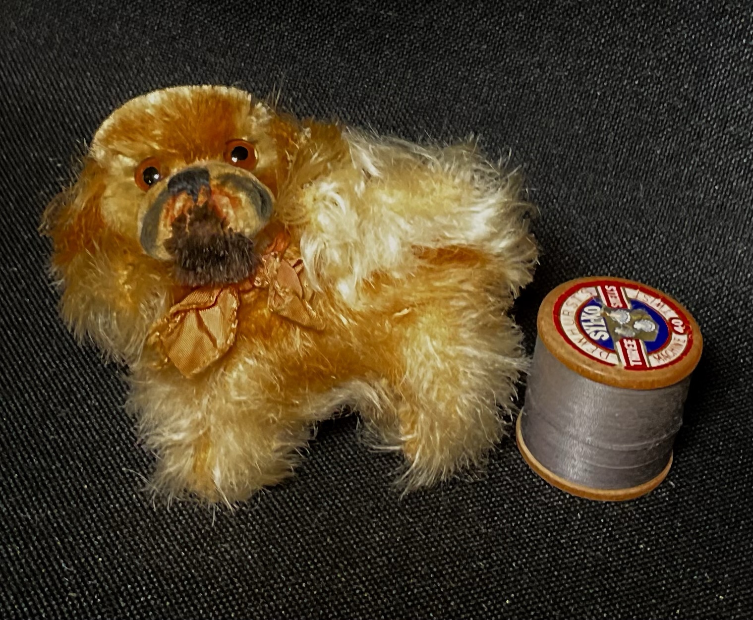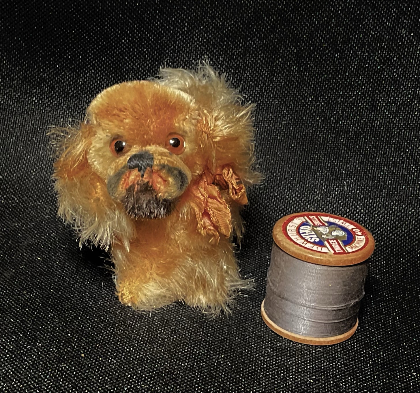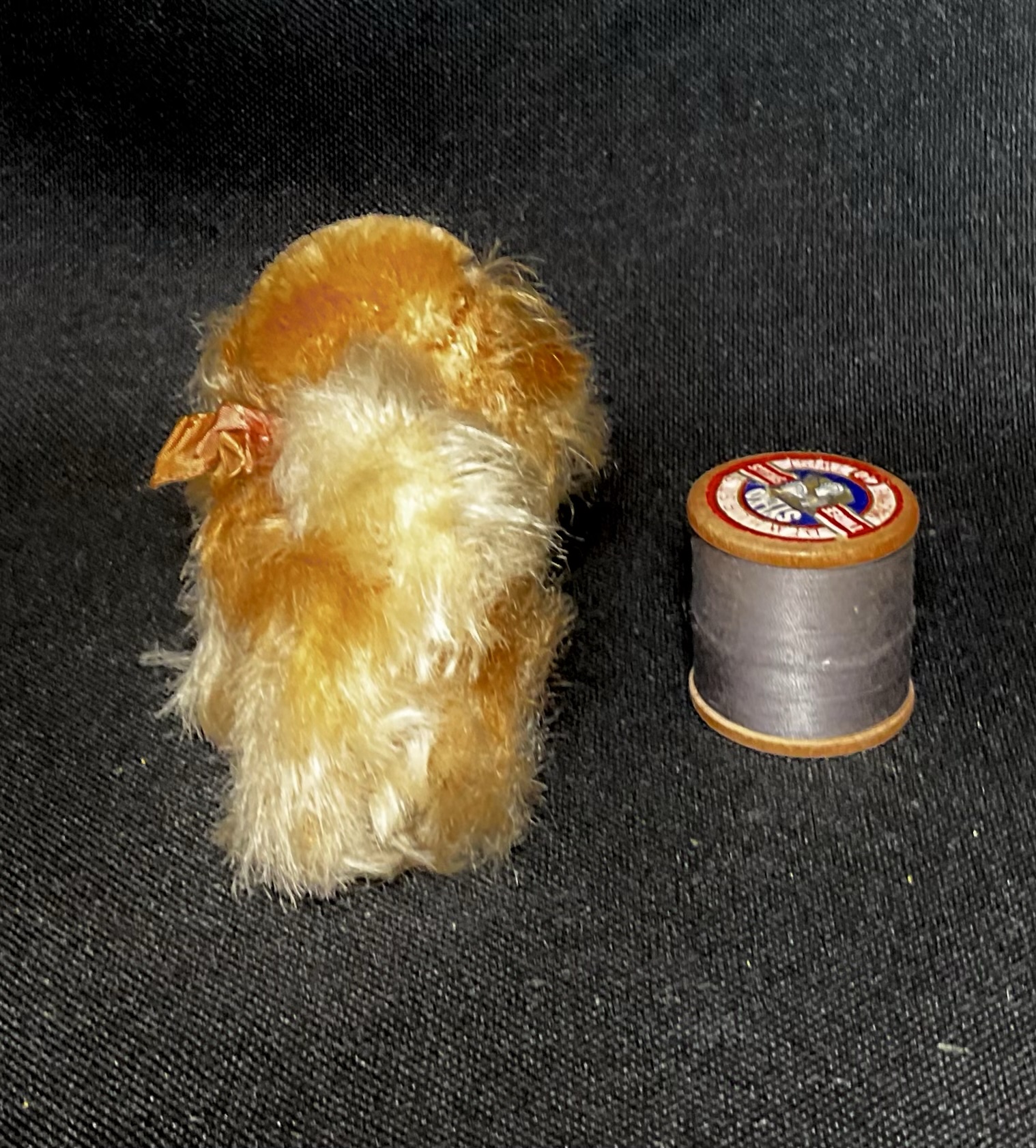 Suzie Vintage Steiff Peke with button, dating to 1950s and in the smallest size made, ideal teddy or friend. Great original condition with her bow. Cleaned moth treated and checked over. Approx 8cm